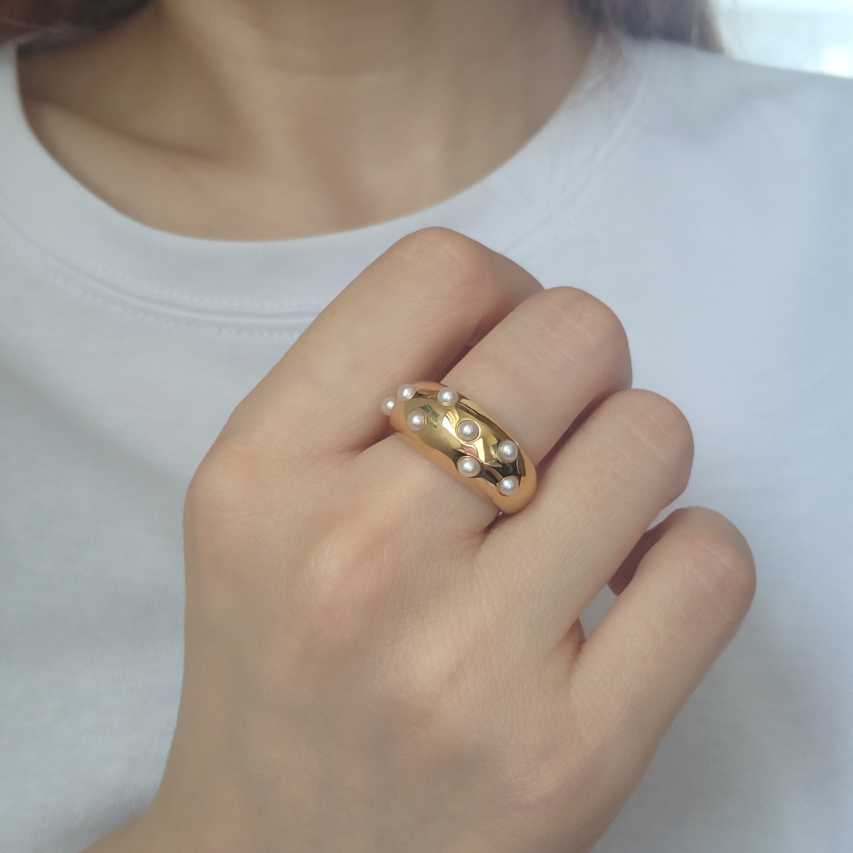 小粒で愛らしい「ベビーパール」を贅沢に散りばめた、水玉模様のようなデザインリング。