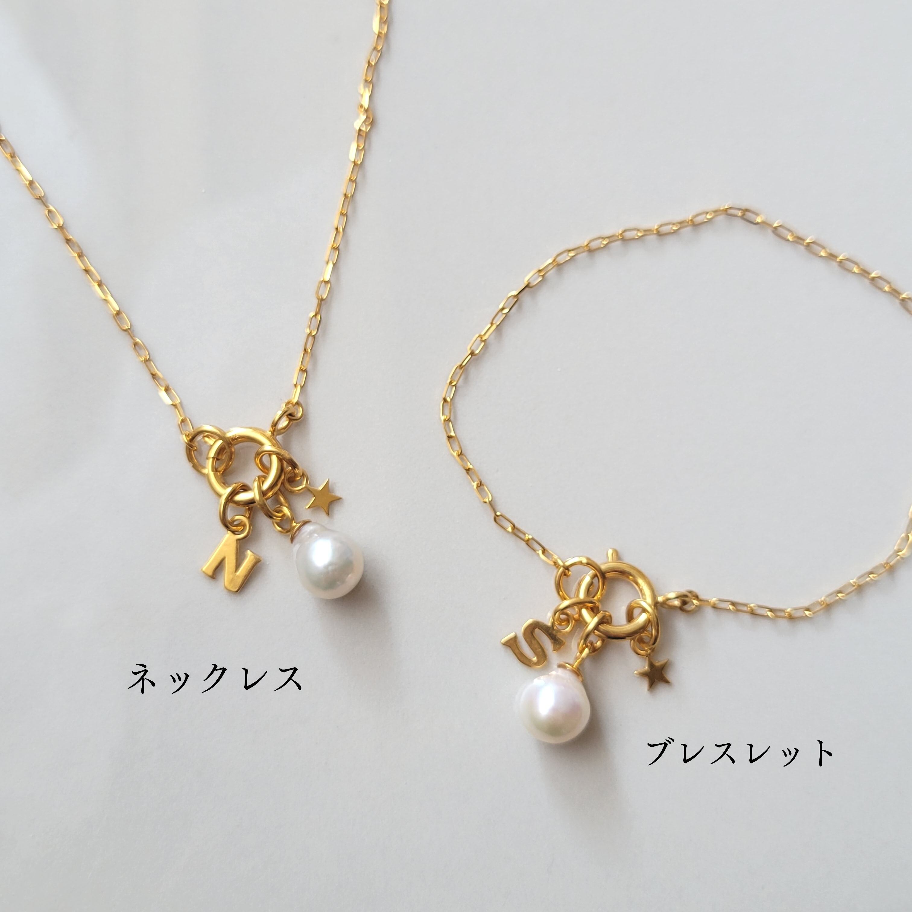 【選べるイニシャル】バロックパールのしゃららんブレスレット 星 ハート チャーム