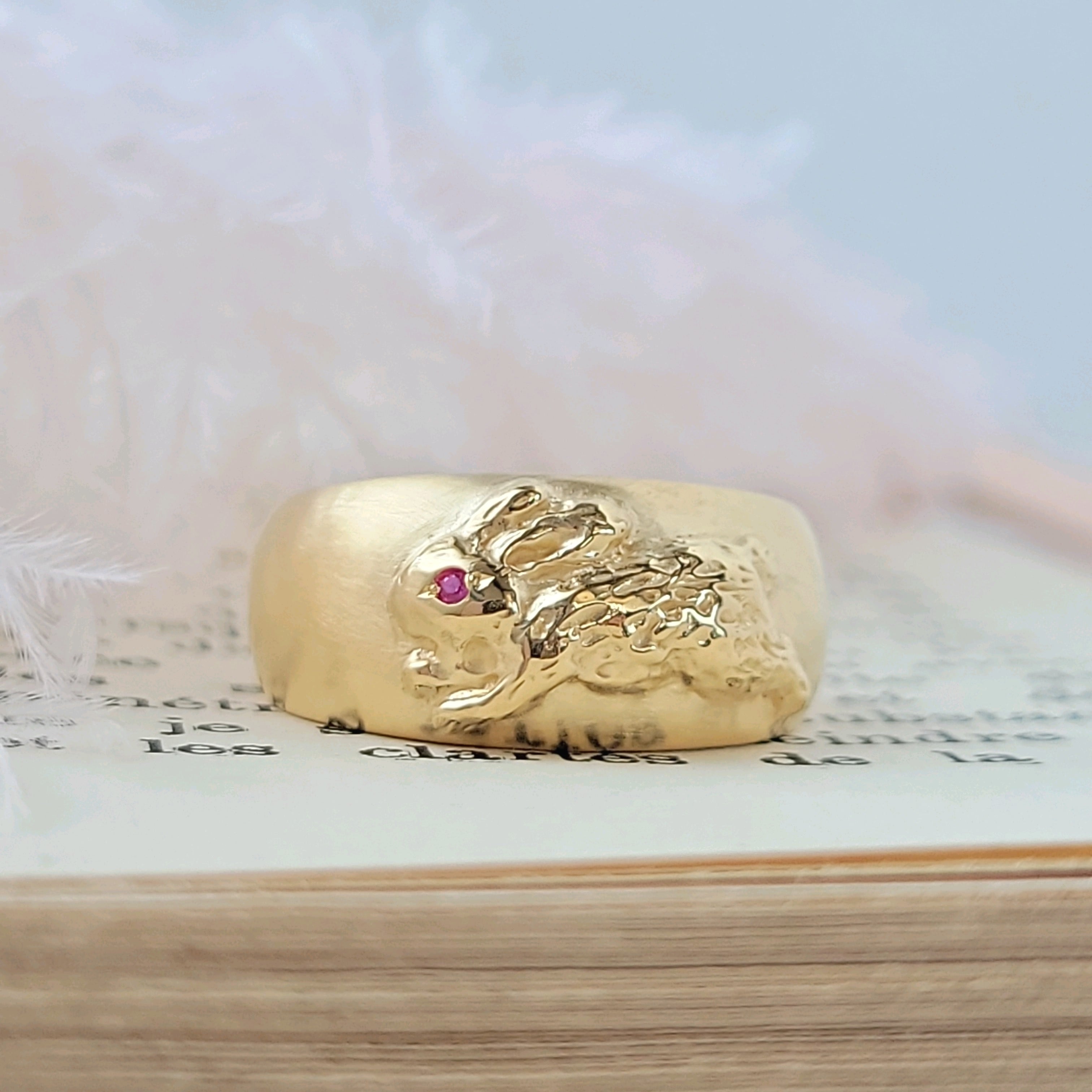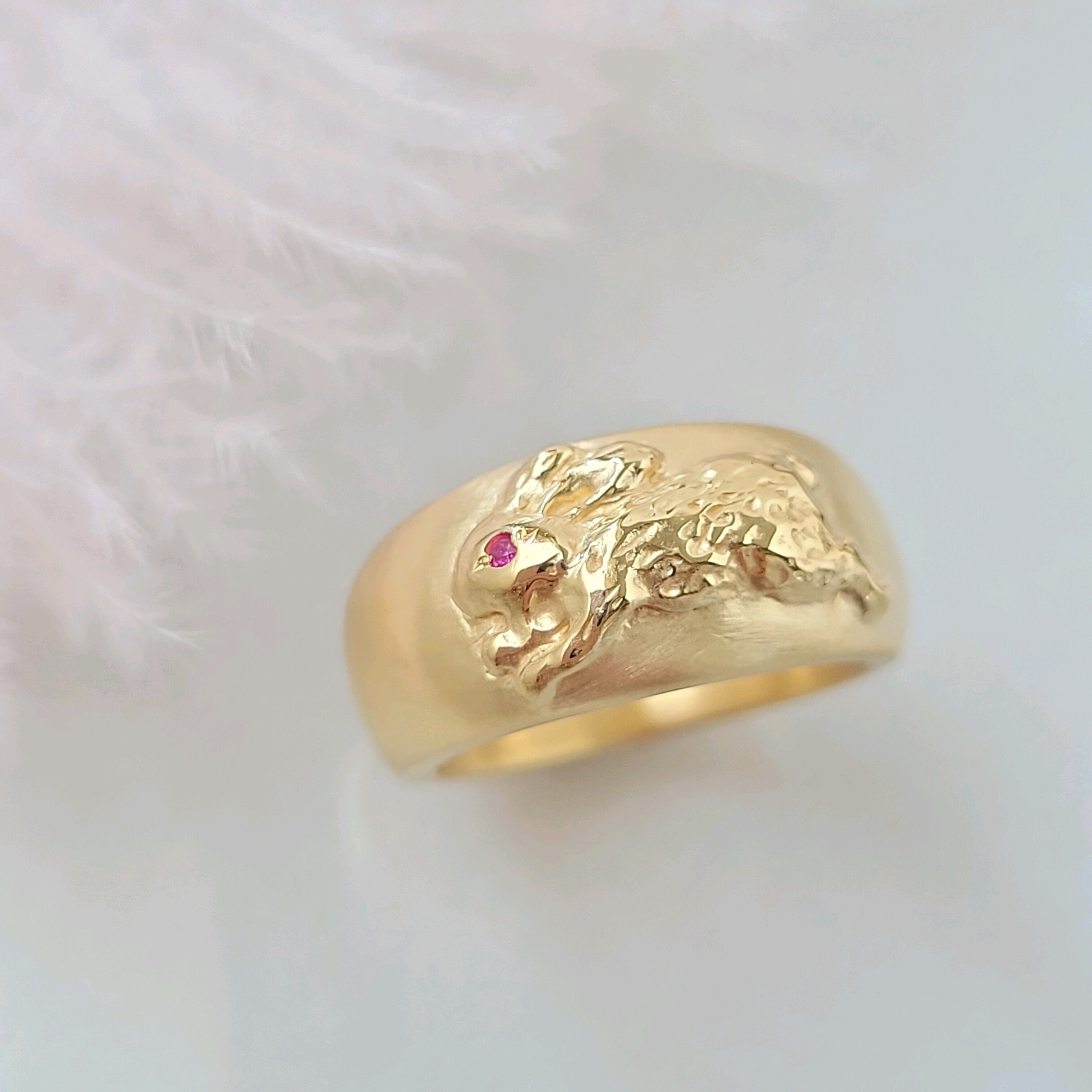 【ルビーの瞳】もこもこ子うさぎが駆けるボリュームリング アンティーク風