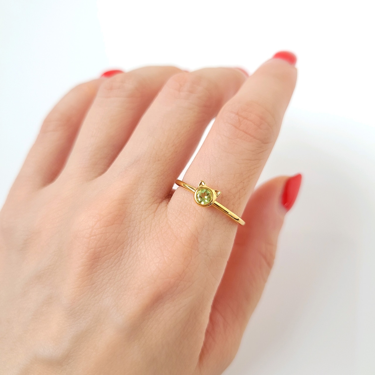 【選べる天然石】ちびねこちゃんの天然石リング ピンキーリングにも