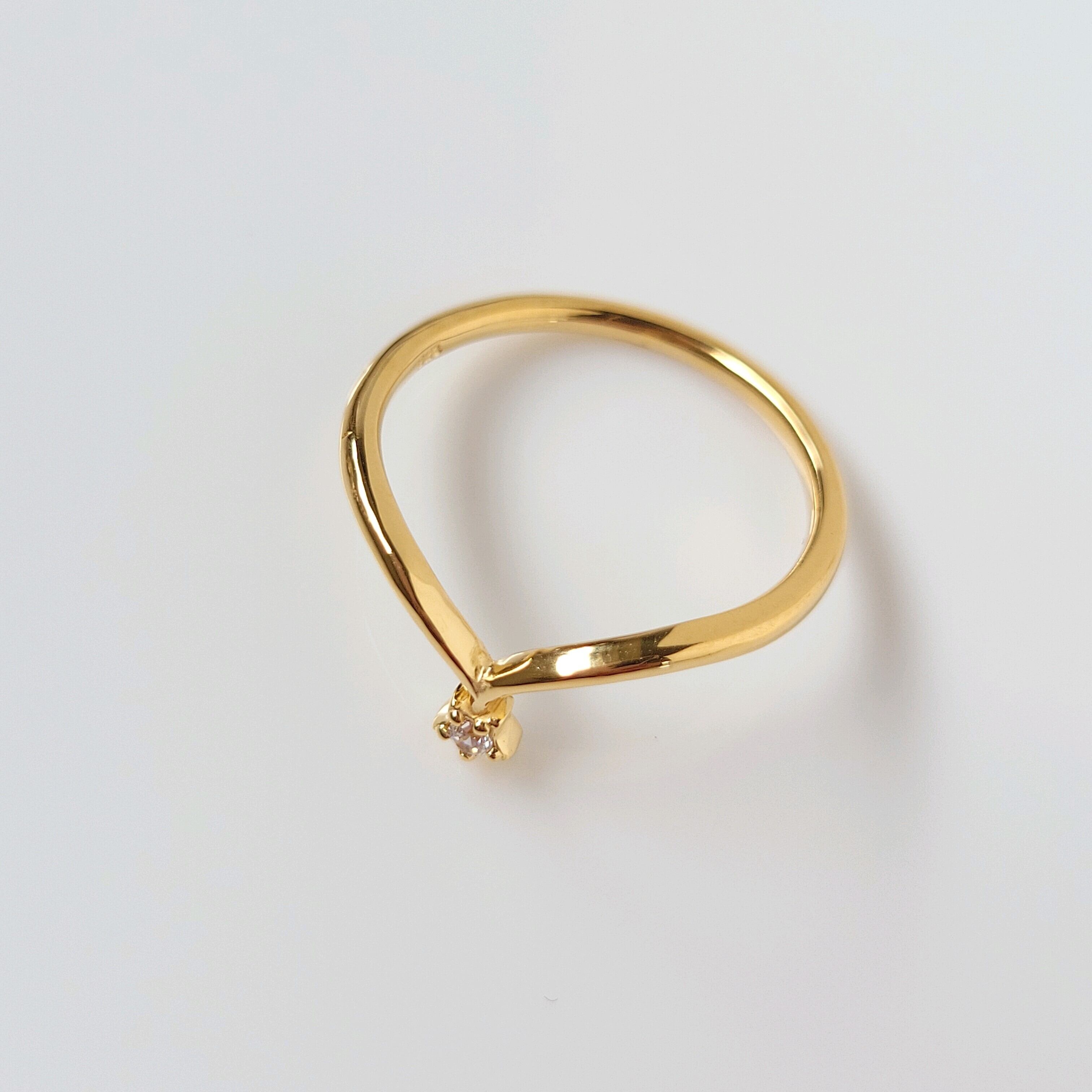 V字のリングは縦なラインを強調して、指をしゅっと長く見せてくれる効果があります。