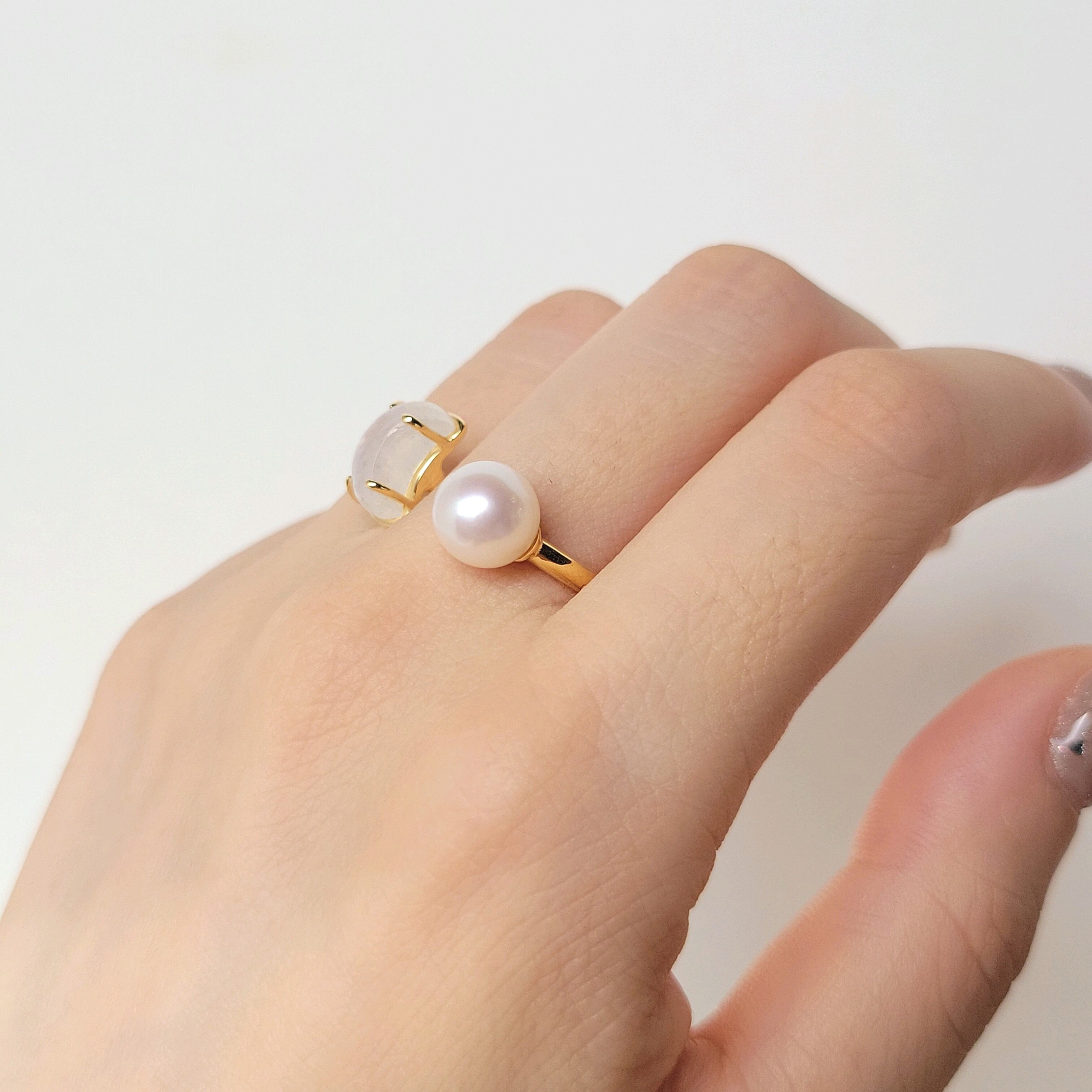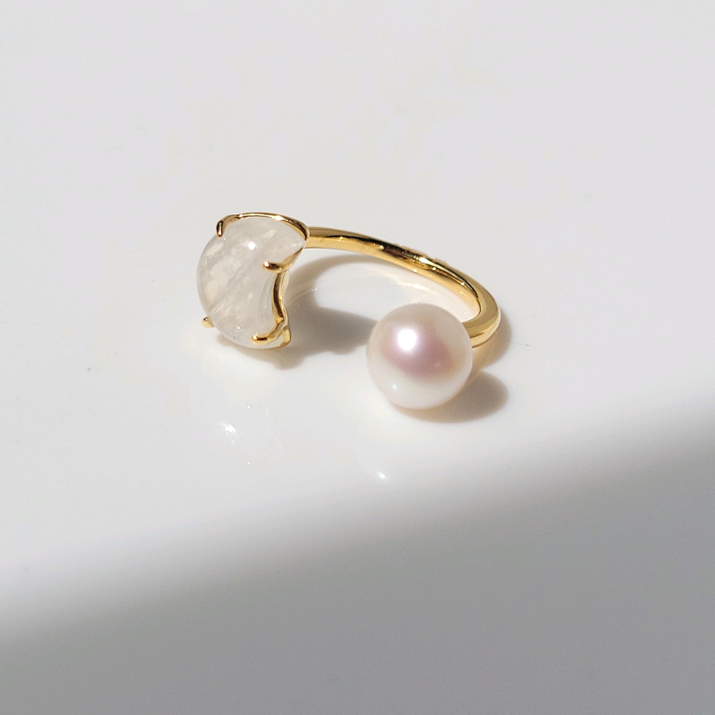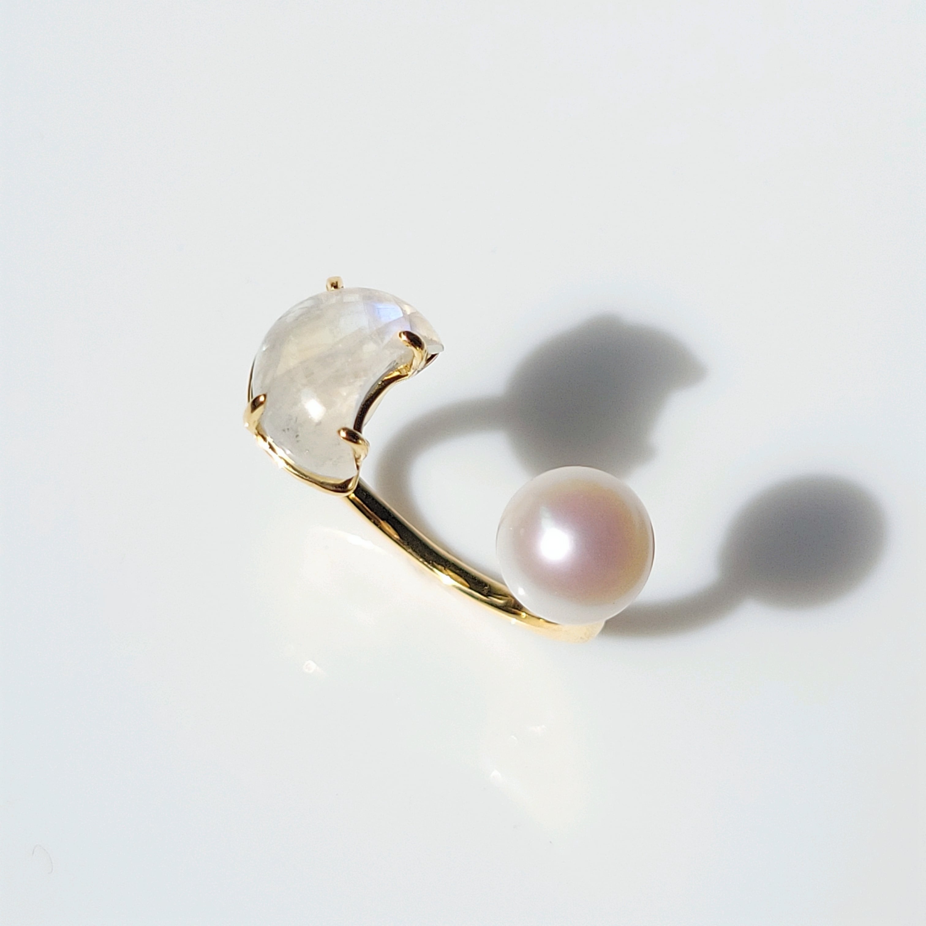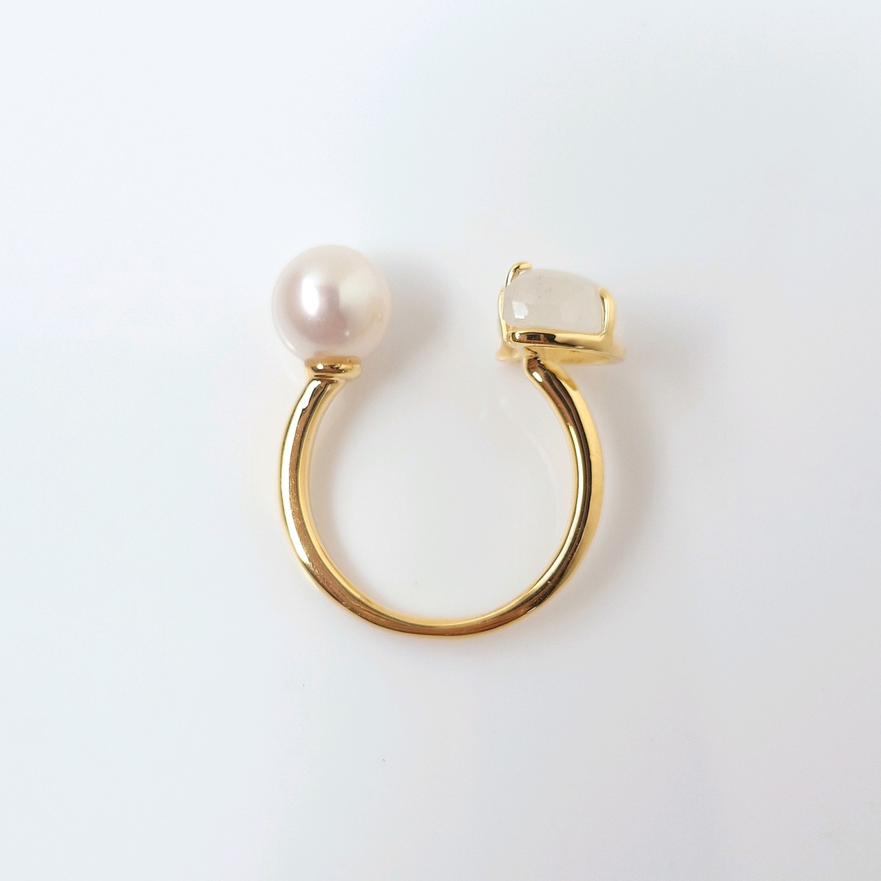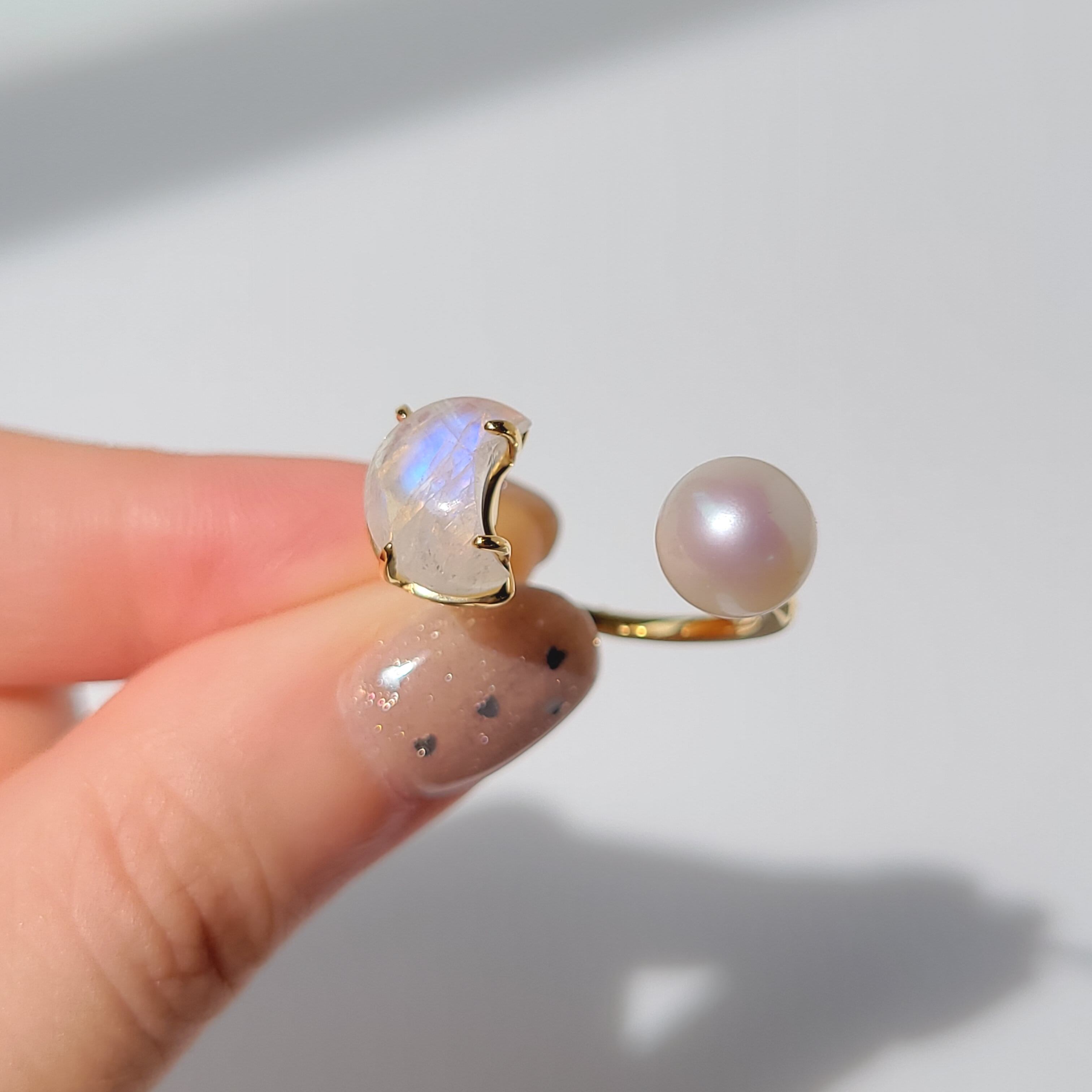 【数量限定】三日月ムーンストーンと満月パールのオープンリング フリーサイズ