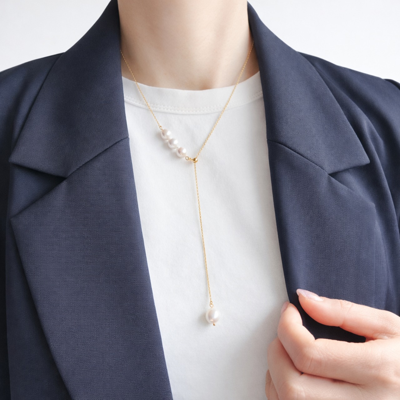 3粒の淡水パールを斜めに配し、