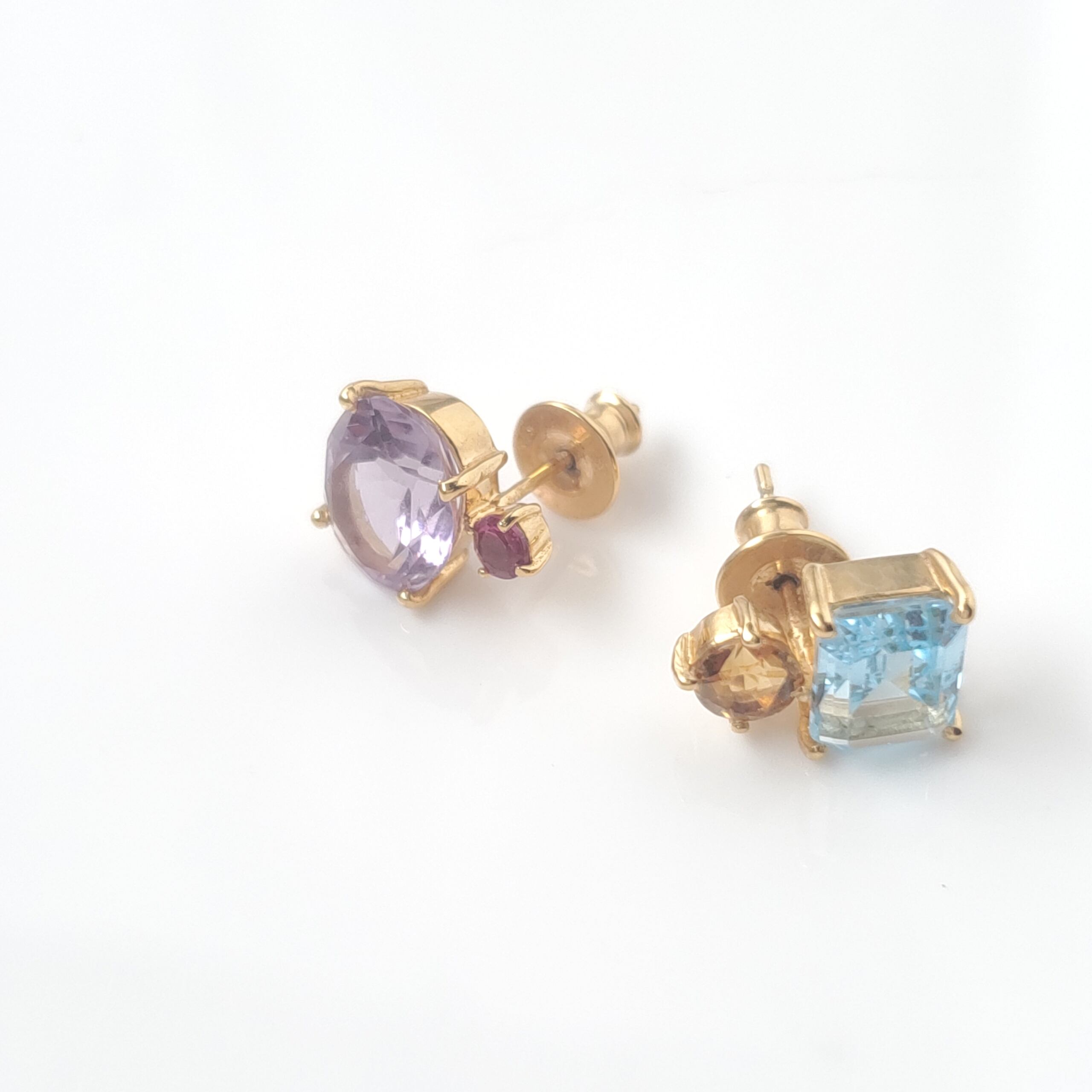 アシンメトリー★天然石配色スタッドピアス