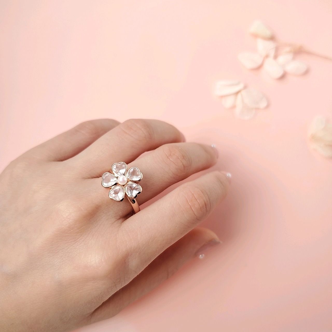 ローズクォーツのキラキラ桜リング アコヤ真珠 ピンクゴールド