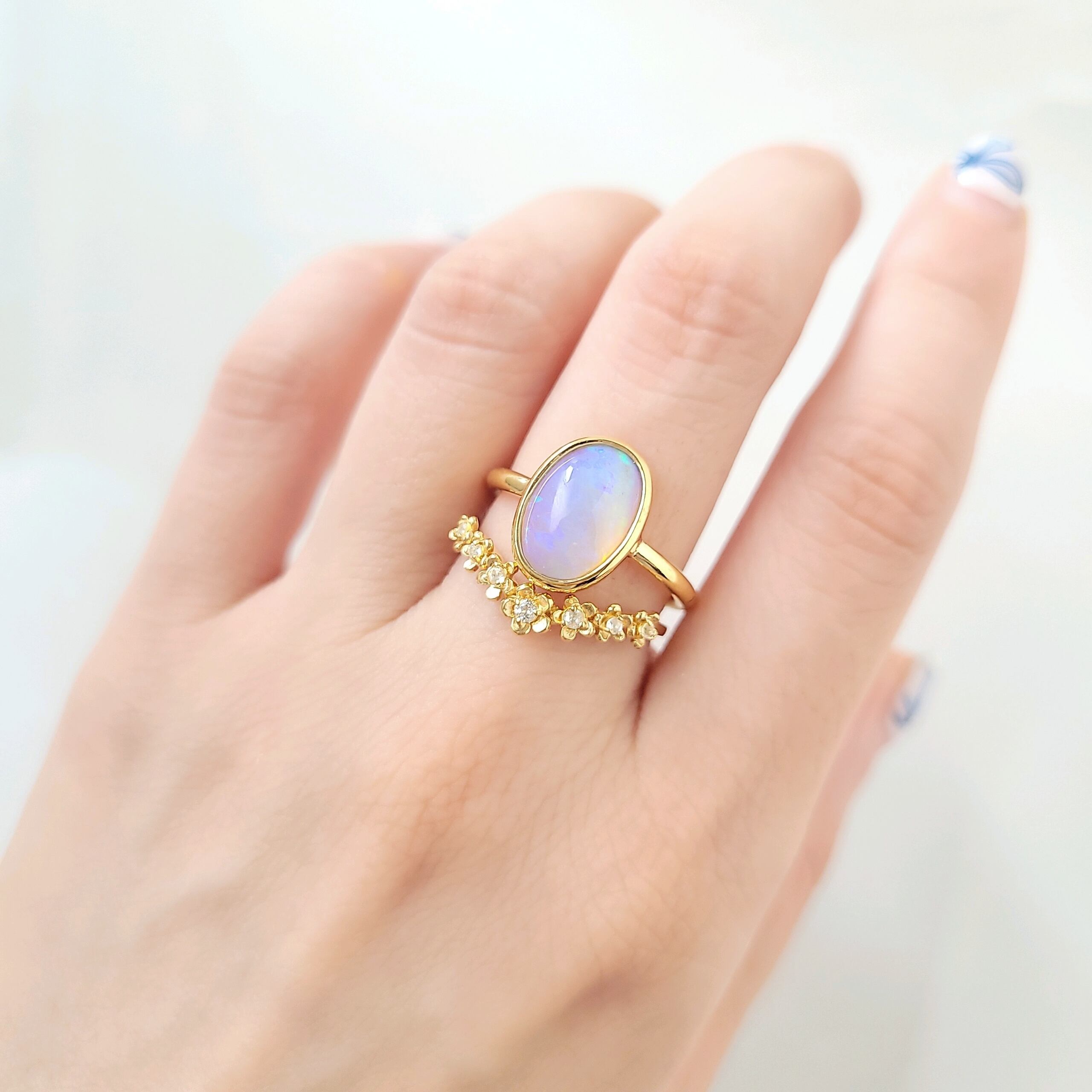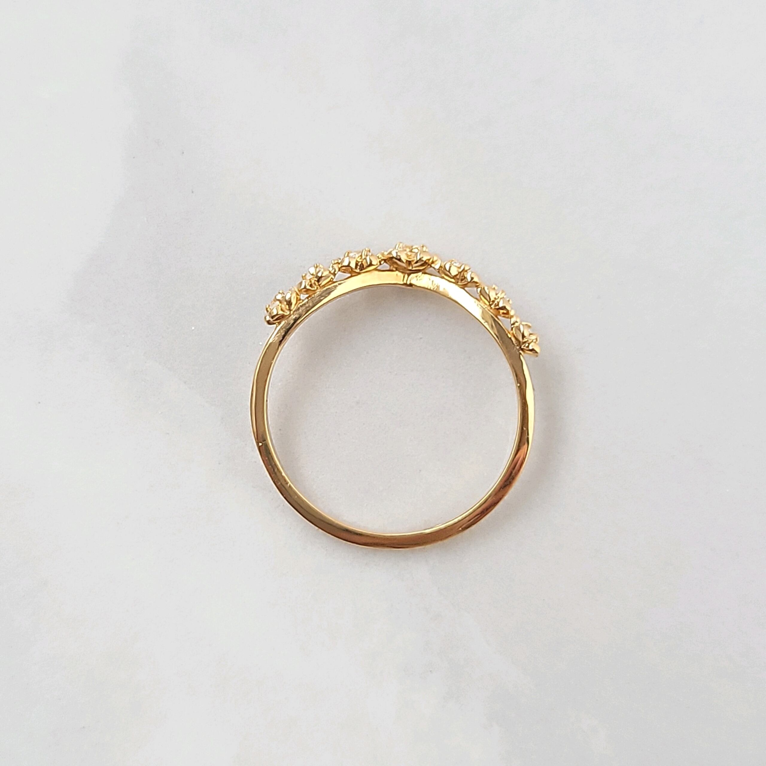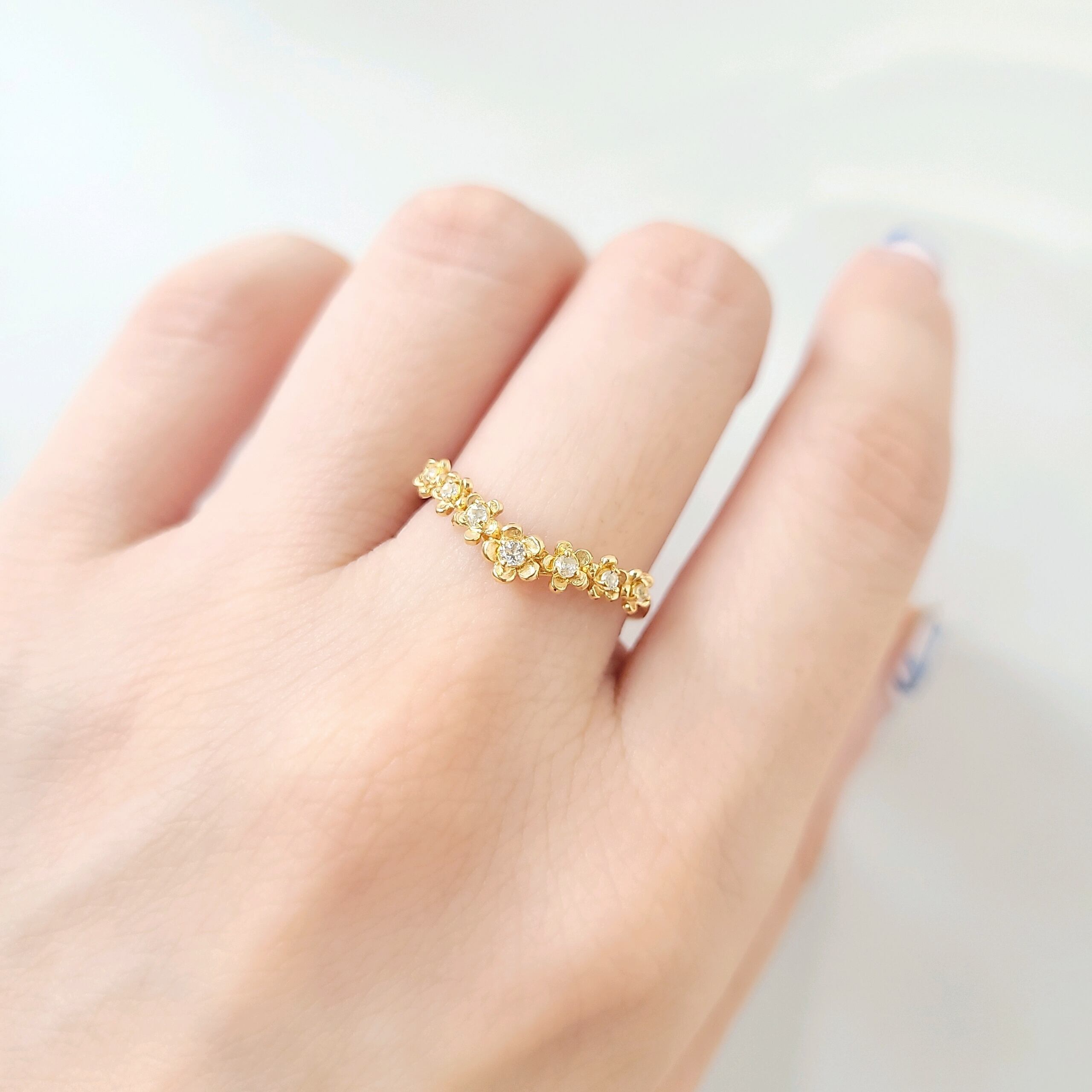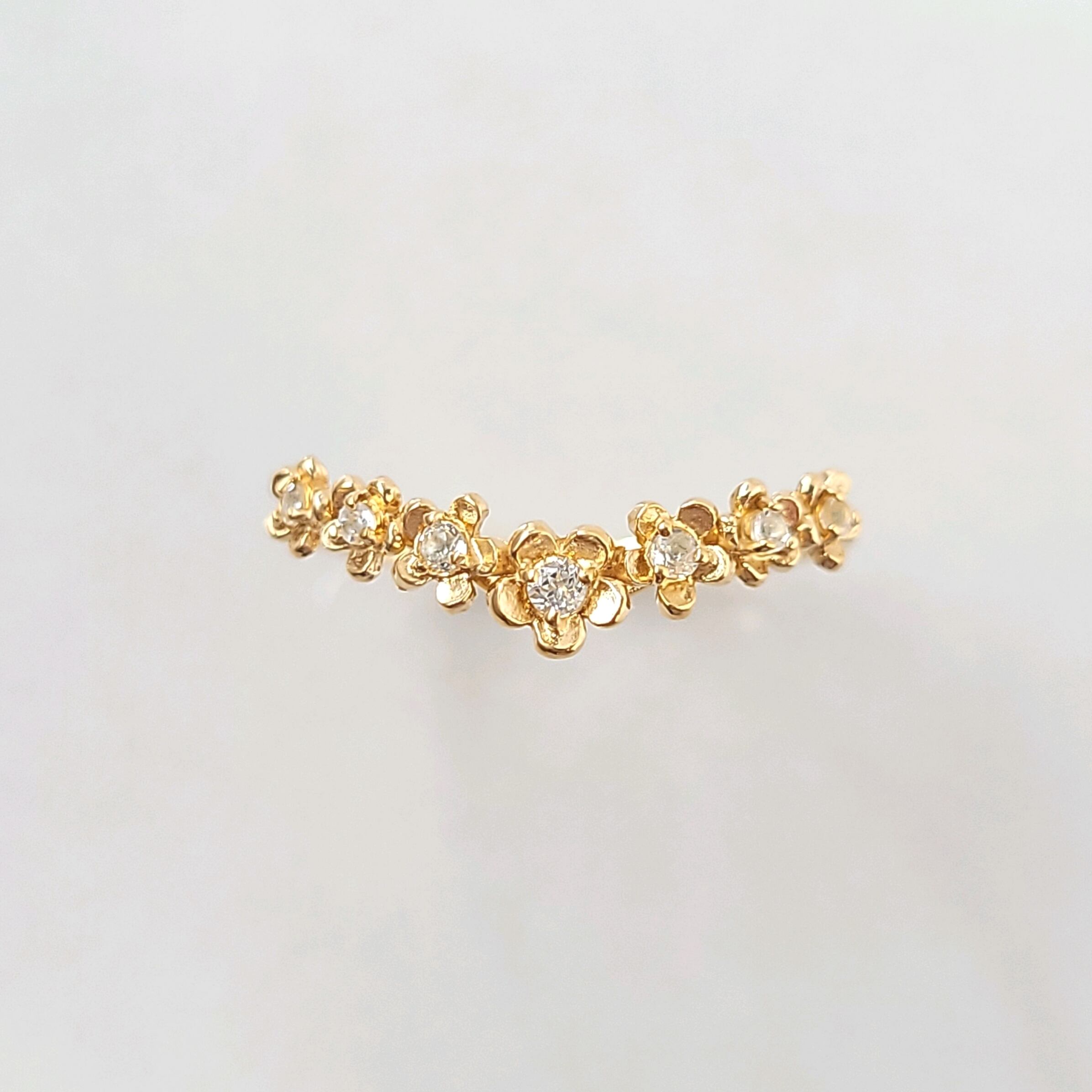 子供の頃に草原でお花を摘んで花冠を作った、あのときのワクワク感をリングにしてみました。